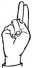 На ћирилици написано РАДНА МЛАДЕНОВИЋ састоји се из 15 слова [?]. Исписано ћириличном једноручном азбуком за глувонеме: